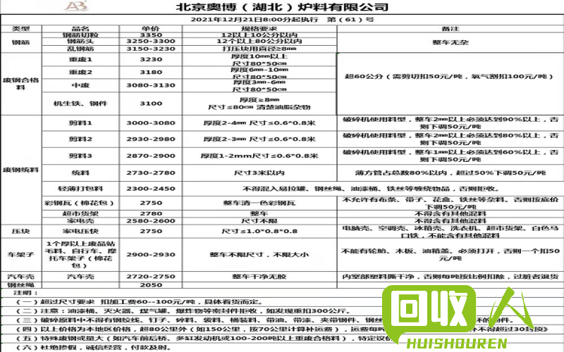 以上仅为湖北废铁价格的部分参考,具体价格还需要根据市场行情和供需关系进行调整。废铁价格可能会随着市场情况波动,建议及时关注行业动态,并与具体废铁收购商进行沟通。